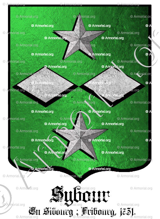Origine du blason " SYBOUR " : " En Sibourg, Fribourg, 1731, Suisse (i) "