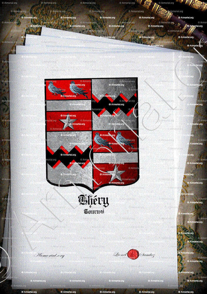 Origine du blason " THERY " : " Tournai, Belgique (i) "