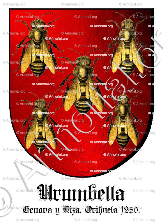 Origine du blason " URUMBELLA " : " Genova y Niza . Orihuela 1250., Italia , España (i) "