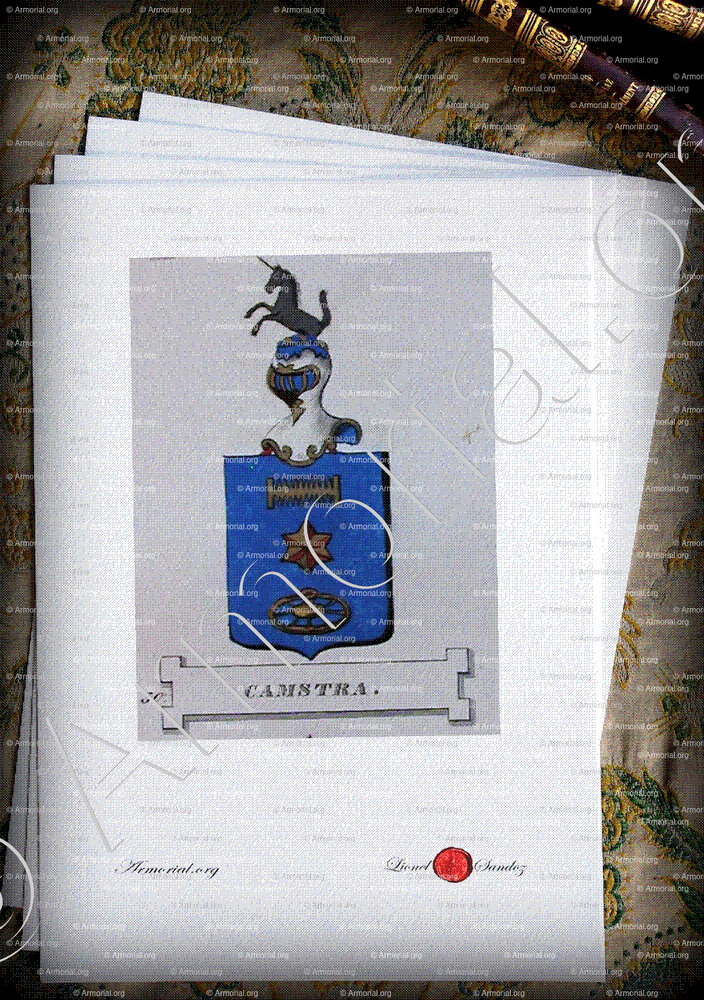 CAMSTRA est un nom qui s’accompagne d’un blason.