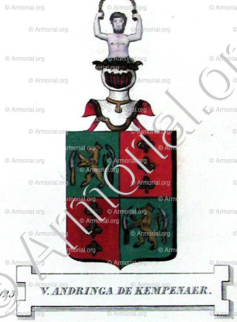 Origine du blason " Van ANDRINGA de KEMPENAER " : " Friesland (Stamboek van den Frieschen, 1846), Nederland "