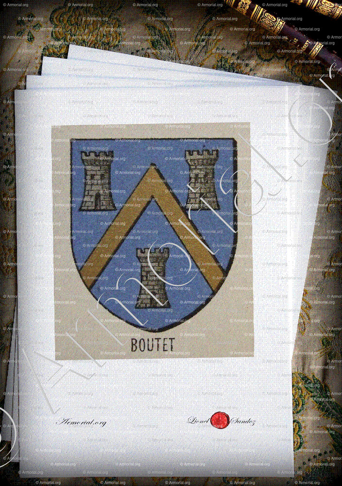 Origine du blason " BOUTET " : " Bourbonnais, France "