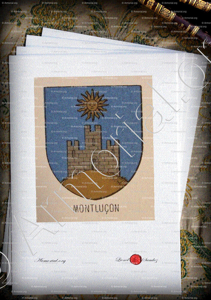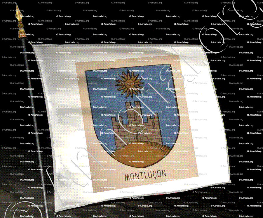 « D'azur au château d'argent, sur une montagne d'or, le tout surmonté d'un soleil de même ».