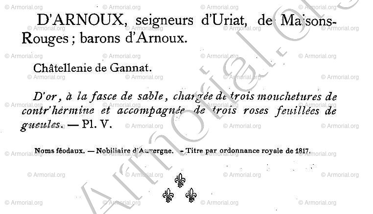 d’ARNOUX, seigneurs d’Uriat, de Maisons Rouges.