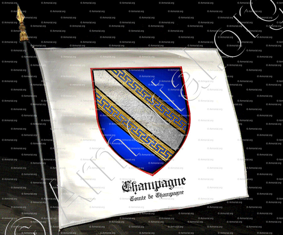 "D'azur, à la bande d'argent, côtoyée de deux cotices d'or."