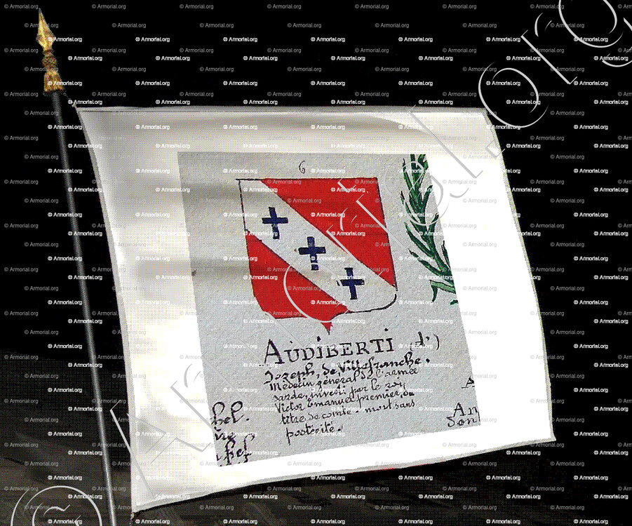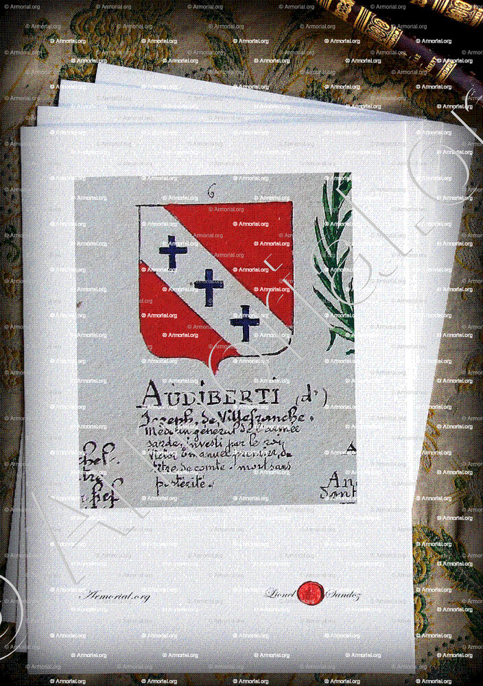 1. Un magnifique fac-similé aquarellé sur papier Vélin d’Arches (format A4) de ce blason