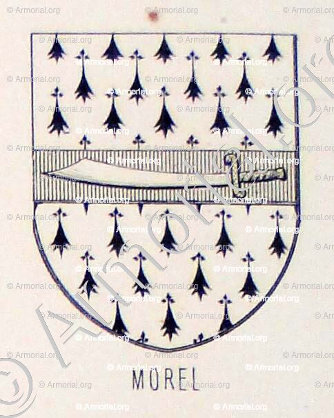 « D’hermine, à la fasce de gueules, chargée d’un coutelas d’argent, garni d’or. »