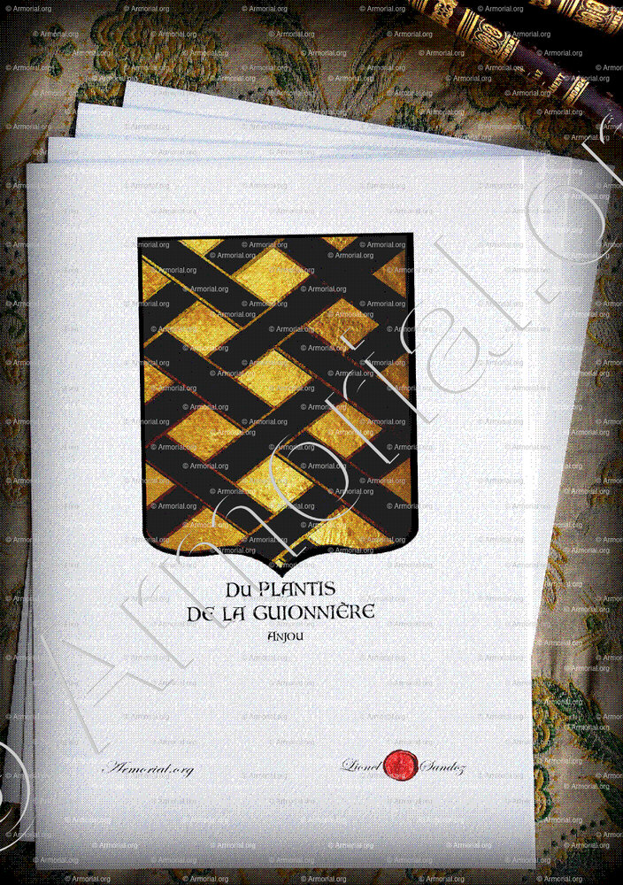 Origine du blason " Du PLANTIS de la GUIONNIÈRE " : " Anjou, France "