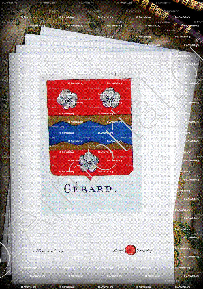1. Une magnifique œuvre d'art, fac-similé de ce blason, aquarellé à la main sur papier Vélin d’Arches (format A4).